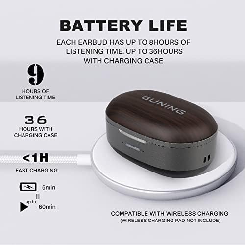 Classic and humanized design :By the metal and wood grain surface process are used, S2 bluetooth headphones has very classic outlook. LED of charger box can be adjust the brightness, the light can be dimmed when sleeping.S2 has long playtime battery,it has 9 hours working time and 50 hours standby time.