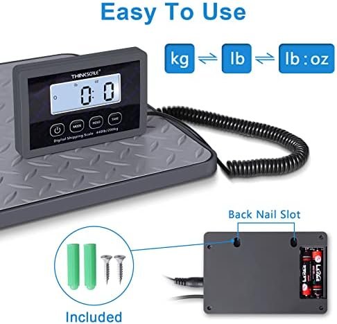 BRIGHT LCD DISPLAY & 2 POWER: THINKSCALE postage scale will not turn off automatically by default, Back-lit LCD display is easy to read and can be moved with the connected cable for clear visibility when weighing large items, and it has two rear pin slots for wall mounting or other heights. It support powered by batteries or USB DC adapter both included.