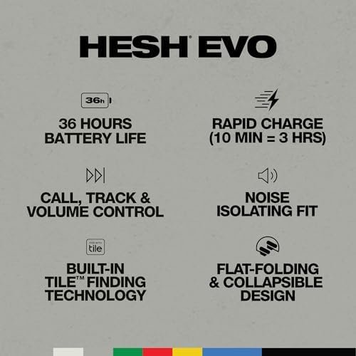 You don’t have to shell out hundreds of dollars for full, rich sound and wireless freedom. Hesh Evo™ gives you all that and much more for far less than other so-called “premium” headphones. The 4th generation Hesh Evo combines a proven design with all the features you need and none that you don’t. All controls — call, track change, and volume — are right at your fingertips with easy-to-use tactile buttons. Don’t remember where you left your headphones? Don’t sweat it — Hesh Evo comes with Tile® finding technology built-in. Battery life is an impressive 22 hours. Even more impressive, Rapid Charge capability provides 3 hours of listening time on only 10 minutes of charge. Hesh Evo is travel-ready, too. It folds flat to fit perfectly into your bag. With included Line USB-C to C cable, you can get charged with universally accepted, ultra high quality, charging cable to get your headphones or other devices back to 100% as soon as possible.