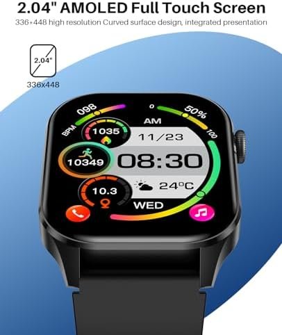 【AMOLED HD Screen】This T98 smartwatch features a 2.04-inch AMOLED retina display with a resolution of 336*448, providing you with an ultra HD visual experience. Not only is the information clearer and more visible, but the field of view is also wider. The body is made of high-strength alloy material, and the strap is designed with ingenuity, using a double-layer design to show more layers. Suitable for different styles of wear, adding highlights to your daily outfit.