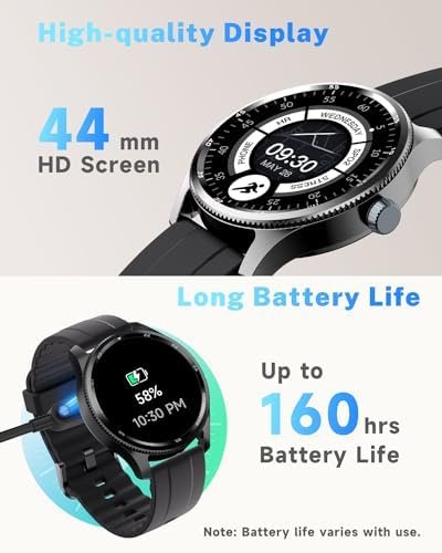 Health Monitoring & Fitness Tracking: The smart watch can monitor your heart rate, and stress levels in real-time, and alert you if anything is abnormal. With over 100 different sports modes, the fitness tracker allows you to easily track your steps, calories burned, distance, speed. With maximum waterproof rating(IP68), the watch is also perfect for swimming.