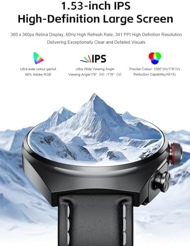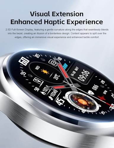 【Design and Versatility】This smartwatch features a 2.5D borderless dial design, a 1.53-inch high-definition display screen, and built-in headphones.360 x 360px Retina Display , 60HZ High Refresh Rate , 341 Ppl High Definition ResolutionDelivering Exceptionally Clear and Detailed Visuals.Visual ExtensionEnhanced Haptic Experience2.5D Full-screen Display , featuring a gentle curvature along the edges that seamlessly blendsinto the bezel , creating an illusion of a borderless design Content appears to spill over theedges , offering an immersive Visual experience and enhanced tactile comfort.