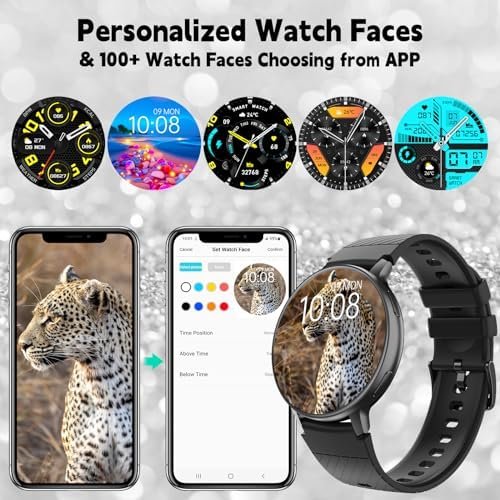 HD Customizable Smart Watch: The smart watch comes with a 1.39 inch full touch color screen. The system is equipped with more than 100 optional exquisite dials. You can also choose your favorite photos to customize the dial to show your style.