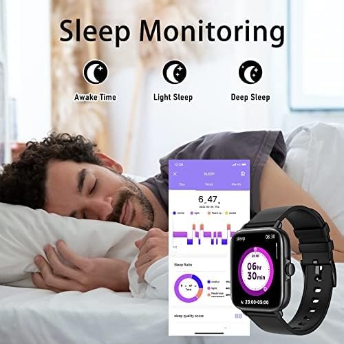 【More Practical Functions】Smart watch is compatible with smartphones that use iOS 8.0/Android OS 4.4 or above, and Bluetooth 4.0 or above. It contains many daily useful tools, such as bluetooth call, smart notification, AI voice, breathing training, music control, camera control, find phone, sedentary reminders, alarm clock, stopwatch, weather, Flashlight. Bring you more smart experience.