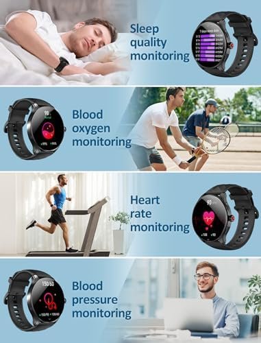 【 Health Monitoring Fitness Watch】Smart watch for men provides automatically monitor your real-time health metrics (heart rate, blood oxygen, sleep and stress level). Also, The android smart watches for men also track your sleep status and analyzes the sleep quality to lead a better sleeping habit. You can view this data directly in real time on your watch and more detailed data can be displayed in the Kumi app.