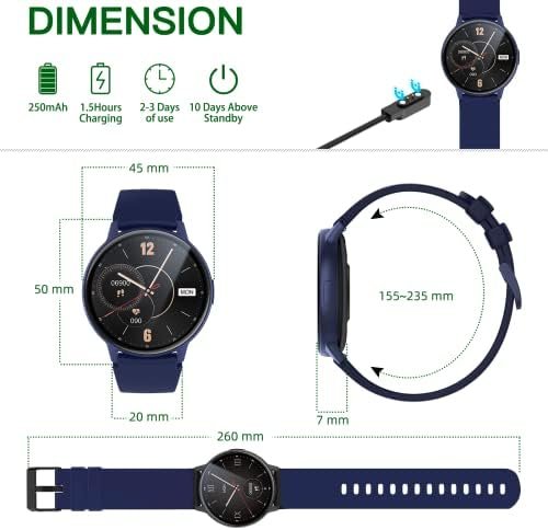 🔋Quick Charge & IP68 Waterproof: The smartwatch only takes 1.5 hours to charge and can be used for about 10 days. With a full capacity of 250mah, enjoy your watch for up to 2-3 days even with always-on display. The fitness watch is IP68 waterproof, you can wear it when washing hands, in the rain, don’t worry about getting water in your watch.