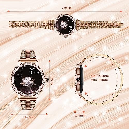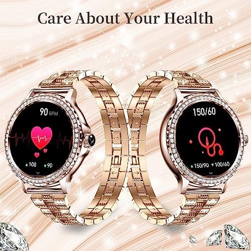 Stylish Design Smart watches for Women – The ladies round smart watch has a 1.3-inch high-definition full-touch color screen, providing you with a better visual and operating experience. The bezel is embellished with 60 brilliant diamonds, adding to your elegant charm with every gesture