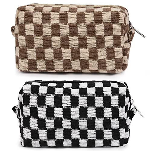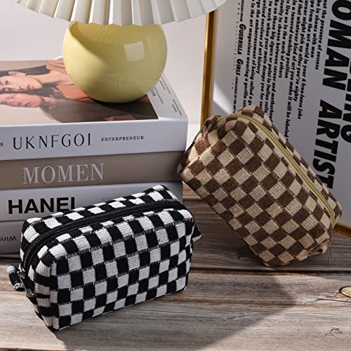 Fashion Design– You will get 2 pack make up bag in total.Black and Brown checkered cosmetic bag, distinctive pattern design and color matching, original and always popular, ideal for carrying and using during your travels