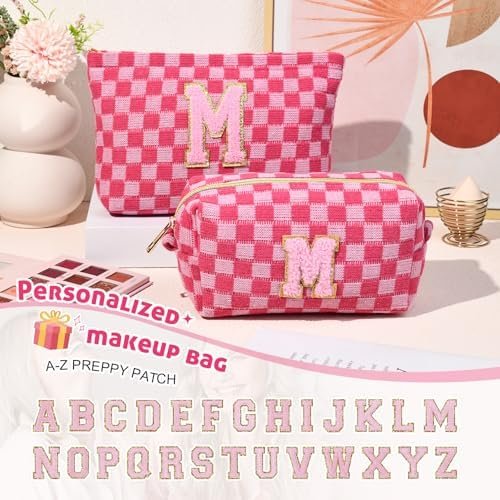 Unique Initial design– Our makeup bag features an initial letter design that adds a personalized touch. The printed pattern is clear, cute, and beautiful, enhancing its charm. Crafted from soft and comfortable canvas fabric, it maintains its shape and resists deformation. The top zipper design ensures secure usage. Additionally, our cute makeup bag is equipped with a short handle for convenient carrying on-the-go