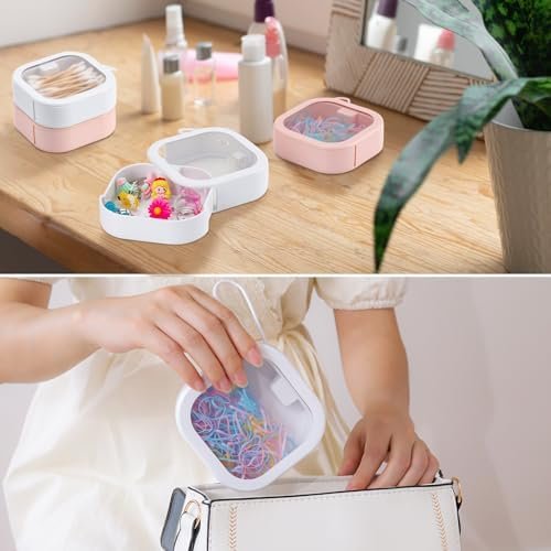 Small Size: Hair tie container is approx. 3.7 x 3.7 x 1.2 inches (L x W x H), compact and portable. Enough capacity to hold many small items. Convenient to put in your pocket or handbag, perfect for travel and daily use.