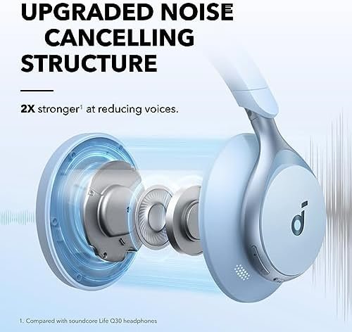 2X Stronger Voice Reduction: Stay focused during bustling journeys with our upgraded noise cancelling structure. Space One excels in blocking out mid to high-frequency sounds with 2X more* voice reduction. *Compared with soundcore Life Q30 headphones.