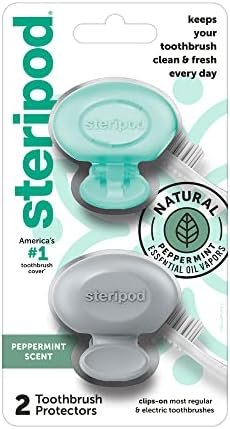 INCLUDES: 2 Steripod Clip-on Toothbrush Protectors with Peppermint Essential Oils, fits most manual and power toothbrushes