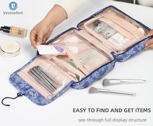 More Details: There is a pocket to hide the hook of hanging toiletry bag when folded to make packing easier. The pouch for makeup brushes is detachable so that you can take it off when make up.
