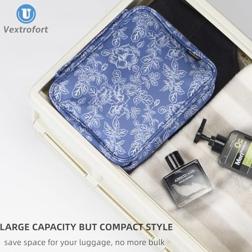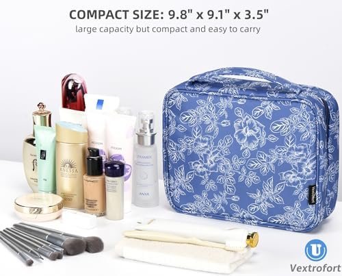 Extra Large Size: ( folded) 29.5*23.5*11cm / 11.6*9.2*4.3IN. The large toiletry bag for women with 4 compartments for small items and full size bottles. Bring this travel toiletry bag instead of different-sized pouches to take all your toiletries and makeup stuff to make packing easier.