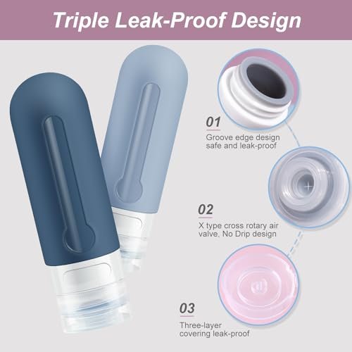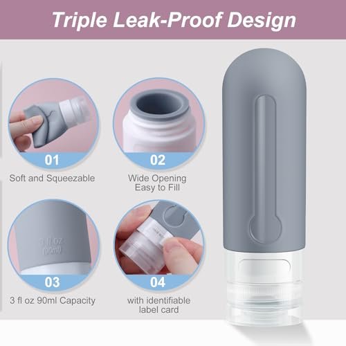 【Leak-Proof Travel Bottles】Three layers of leak-proof design makes these portable toiletry bottles seal extremely tight to prevent liquid leakage or spillage. No matter where you go, travel containers for toiletries with labels will always seal liquids to keep the rest of your luggage safe and undamaged to guarantee you mess-free experiences.