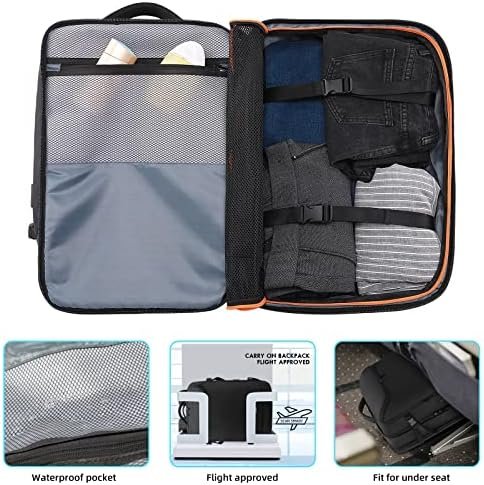 [MULTI-FUNCTION & FLIGHT APPROVED]: The carry on business backpack overall size meets the maximum size allowed by most airlines, fits under the seat and in the overhead bin in airplane. also the design of freely 180 degrees zipper closure making you go through the security check quickly