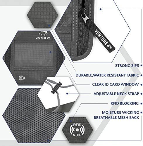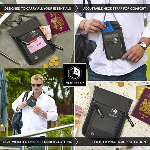 ✅ SUITABLE FOR MEN AND WOMEN – 5.5″ high and 8″ wide , the VENTURE 4TH RFID Passport Holder can be comfortably WORN AROUND THE NECK AND UNDERNEATH YOUR CLOTHING to protect against pickpockets . It’s slim enough that it is virtually invisible even under thin layers of clothing concealing your cash and valuables