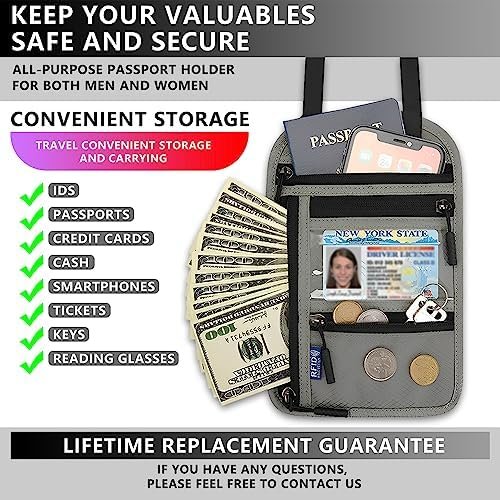 Neck Hanging Design – Our neck hanging design allows you to easily add or remove items, including passports and large smartphones, for quick and easy travel.