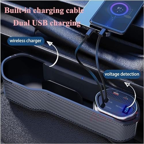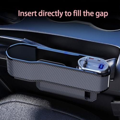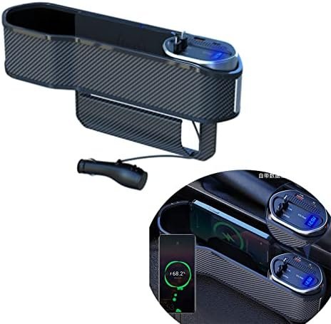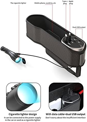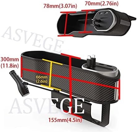 ASVEGE Universal Car Seat Gap Filler Organizer,Storage Box with Cup Holder Dual USB Ports,2 Charging Cables and Wireless Charger,Cigarette Lighter