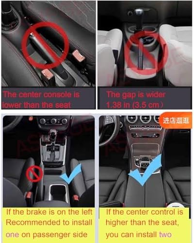 【BUYING NOTICE】 – Not recommended to install :(1) The center console is lower than the seat,(2)The gap is wider 1.38 in (3.5 cm). Recommended to install : (1) If the brake is on the left Recommended to install one on passenger side; (2) If the center control is higher than the seat,you can install 2 pieces.
