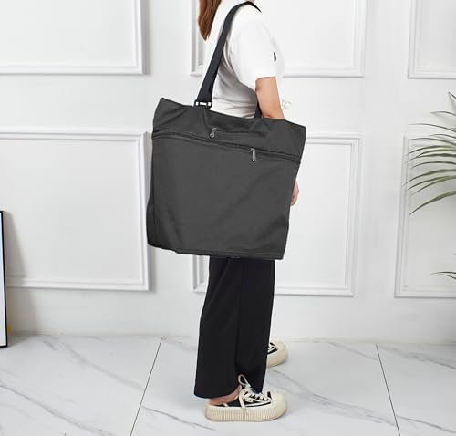 【Design】Foldable wheels for you to switch between shoulder bag or expand to full size as a shopping cart. It will stand up its own when fully extended. The bottom is high-quality board with foldable wheels and button closed, and it is enough firm and solid. Whenever you need, just open the zipper and the shopping bag is stretching.The trolley bag handle is anti-slip and convenient for you to hold.
