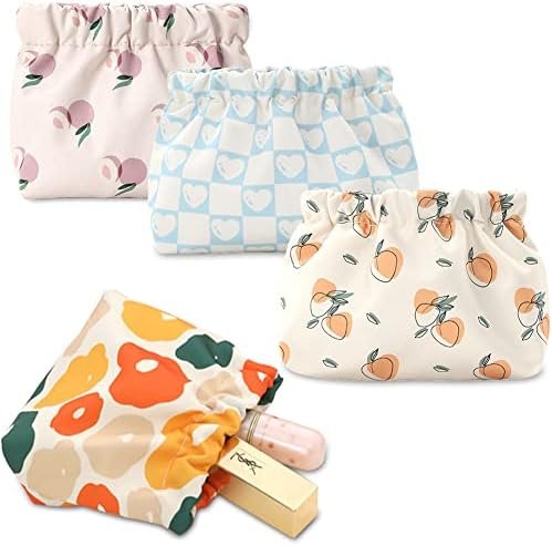 👄Shrapnel print storage bag: The mouth of the bag adopts spring plate design, which can be opened as soon as it is pinched and closed when released, which is more convenient to use and easy to operate with one hand. 4 combo sets for everyday needs.