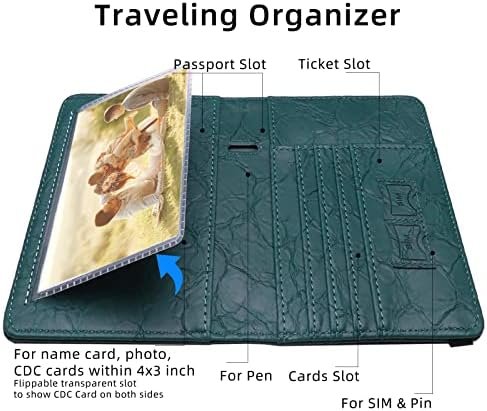 【MULTIPURPOSE SLOTS】This passport and vaccine card holder combo has large storage, which includes 1 transparent card slot, 2 passport slots, 4 cards slots for bank card, credit card, driver license and id card, 2 SIM card slots and 1 pen holder. Travel with our passport case makes you easy to access travel documents during boarding and transit.