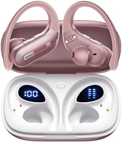 3.【Designed for Sports & IPX7 Waterproof】Boasting a comfortable, ergonomic design with flexible, secure-fit ear hooks, these wireless earphones snugly and securely fit into your ears, even during vigorous exercise, preventing any unwelcome slips. With the inclusion of four pairs of rubber ear tips in various sizes (XS, S, M, L), you can enjoy a fatigue-free and painless listening experience, even if you have smaller ears. IPX7 waterproof rating guarantees protection against water droplets and sweat, making these wireless sports earbuds the perfect choice for workouts, running, and gym sessions.