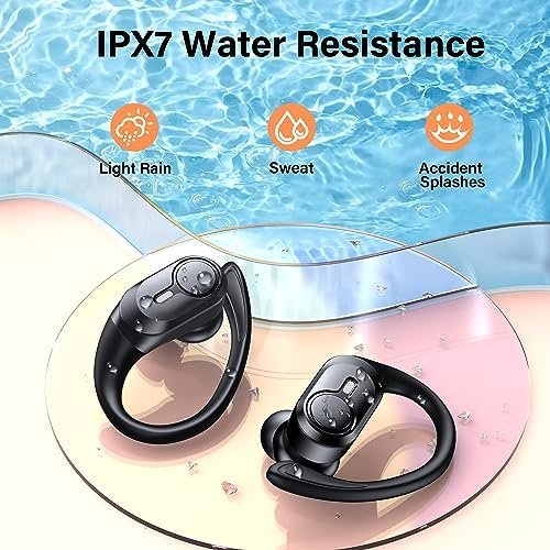 Made for Movement and IPX7 Water-resistant: Enhanced by flexible ear hooks and 3 sizes of soft ear tips, these running headphones stay securely in place during vigorous workouts, daily commutes, and extended listening sessions. You can enjoy music or movie hours of usage without any hint of discomfort or fatigue. Bolstered by an IPX7 waterproof rating, workout headset offer steadfast protection against both sweat and rain, which makes them more suited for exercise/gym/fitness/workout/running.