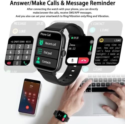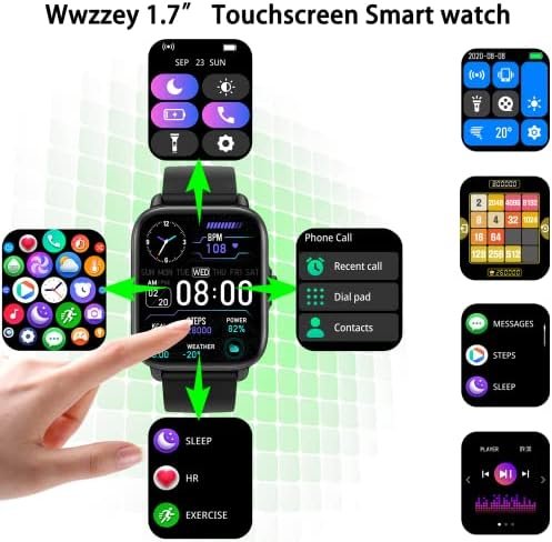 ⌚2023 Upgraded Smart Watch That Can Dial/Answer Call & Receive Smart Notifications: Wwzey Smartwatch for women men comes with 1.7-inch larger color screen and full touch screen, brings you comfortable touch and excellent visual experience. Just connect the smartwatch with your phone via Bluetooth, you can answer and make calls through the touch screen, read the messages or App notifications (Facebook, WhatsApp, Instagram, Twitter, etc).